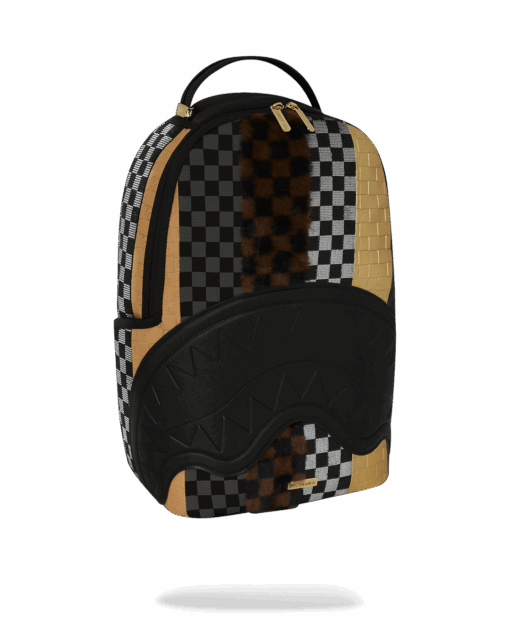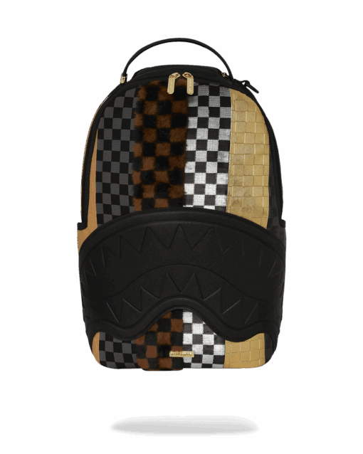 - Dimensions: 18″ x 6″ x 11.5″ • Front zipper pocket • Side pockets • Zippered Stash pocket • Separate velour sunglass compartment • Ergonomic mesh back padding • Adjustable Straps for custom sizing • Gold zippers with metal hardware • Metal “Sprayground Authentic” badge • Slide through back sleeve connects to carry-on luggage to free your hands