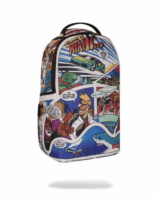 - Dimensions: 18″ x 6″ x 11.5″ • Front zipper pocket • Side pockets • Zippered Stash pocket • Separate velour sunglass compartment • Ergonomic mesh back padding • Adjustable Straps for custom sizing • Gold zippers with metal hardware • Metal “Sprayground Authentic” badge • Slide through back sleeve connects to carry-on luggage to free your hands